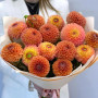 На фото монобукет из 15 оранжевых георгин. В составе: георгина 15 шт, писташ 3 шт, дизайнерская упаковка 1 шт, атласная лента 1 шт, . Все цветы свежие и ароматные, букет красиво оформлен и отлично подходит для подарка. Доступна доставка цветов или самовывоз.