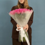 На фото букет из 41 розовой розы. В составе: роза 41 шт, дизайнерская упаковка 1 шт, атласная лента 1 шт, . Все цветы свежие и ароматные, букет красиво оформлен и отлично подходит для подарка. Доступна доставка цветов или самовывоз.