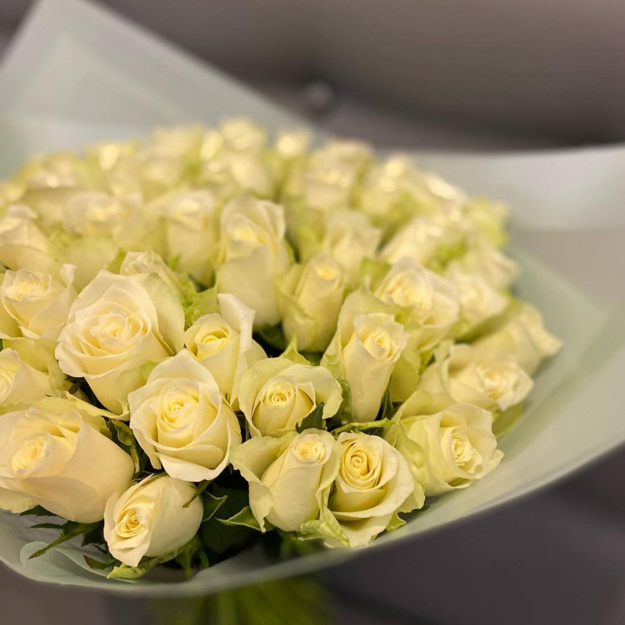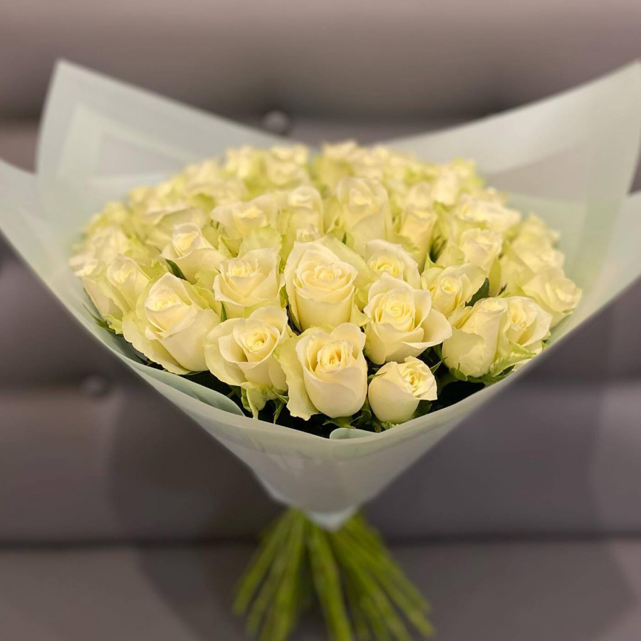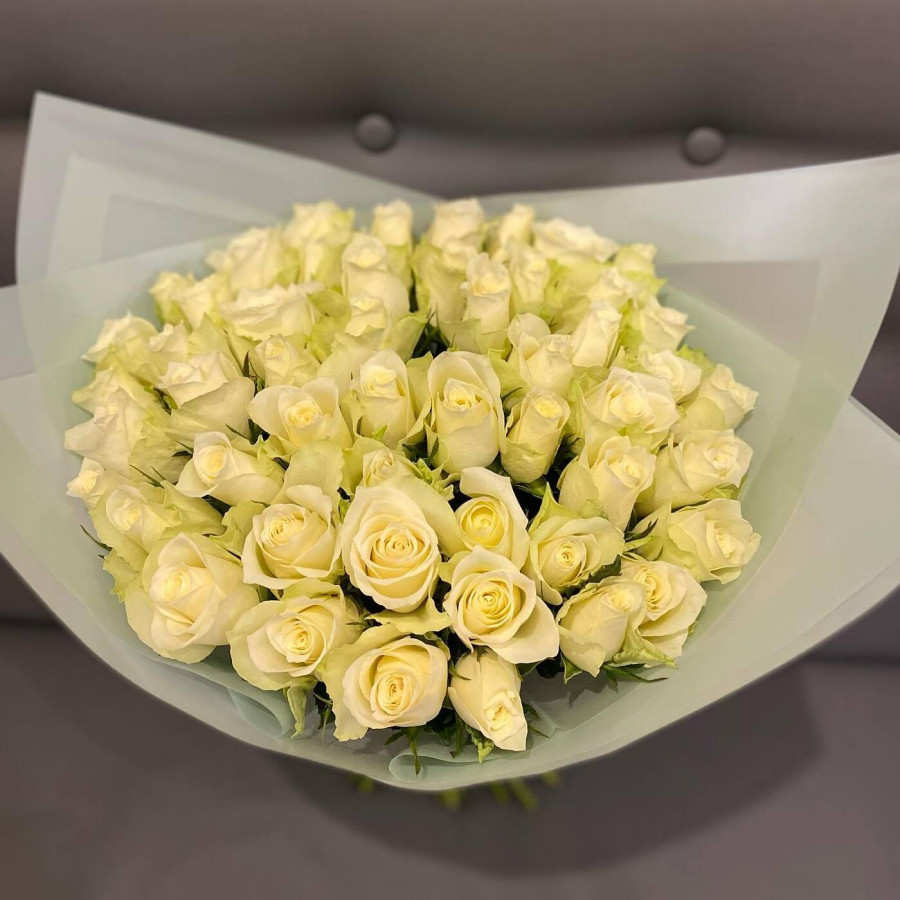 На фото букет из 51 белой кенийской розы. В составе: роза (кения) 51 шт, крафт-бумага 1 шт, атласная лента 1 шт, . Все цветы свежие и ароматные, букет красиво оформлен и отлично подходит для подарка. Доступна доставка цветов или самовывоз.