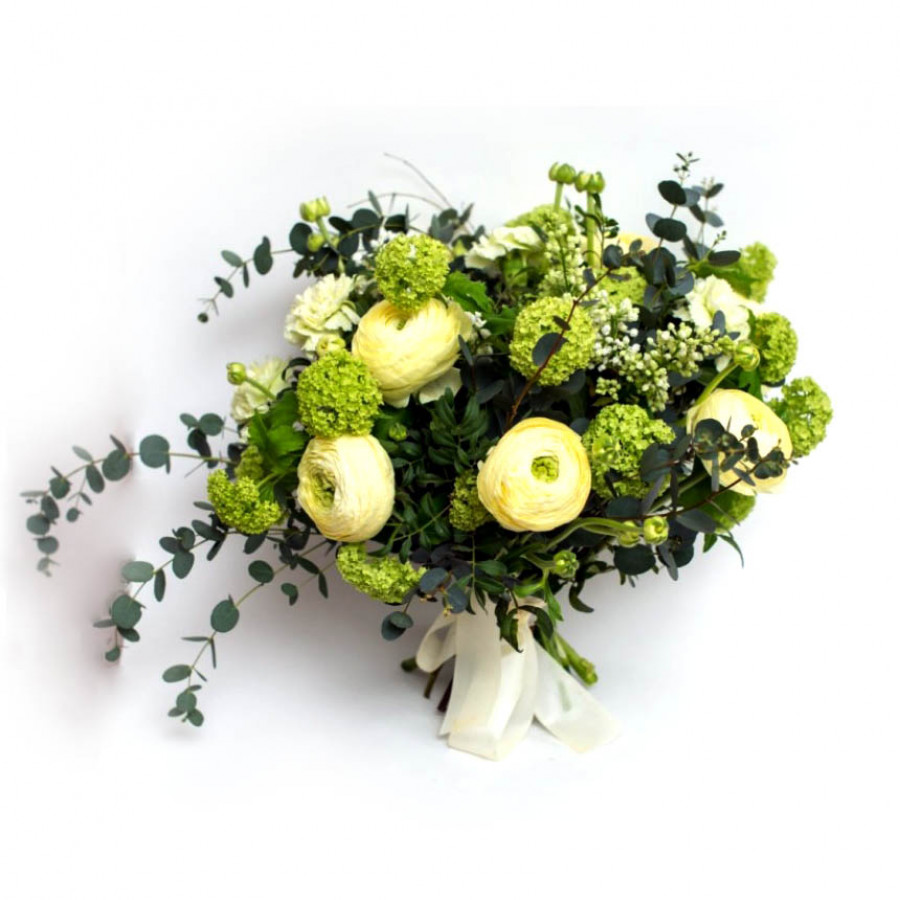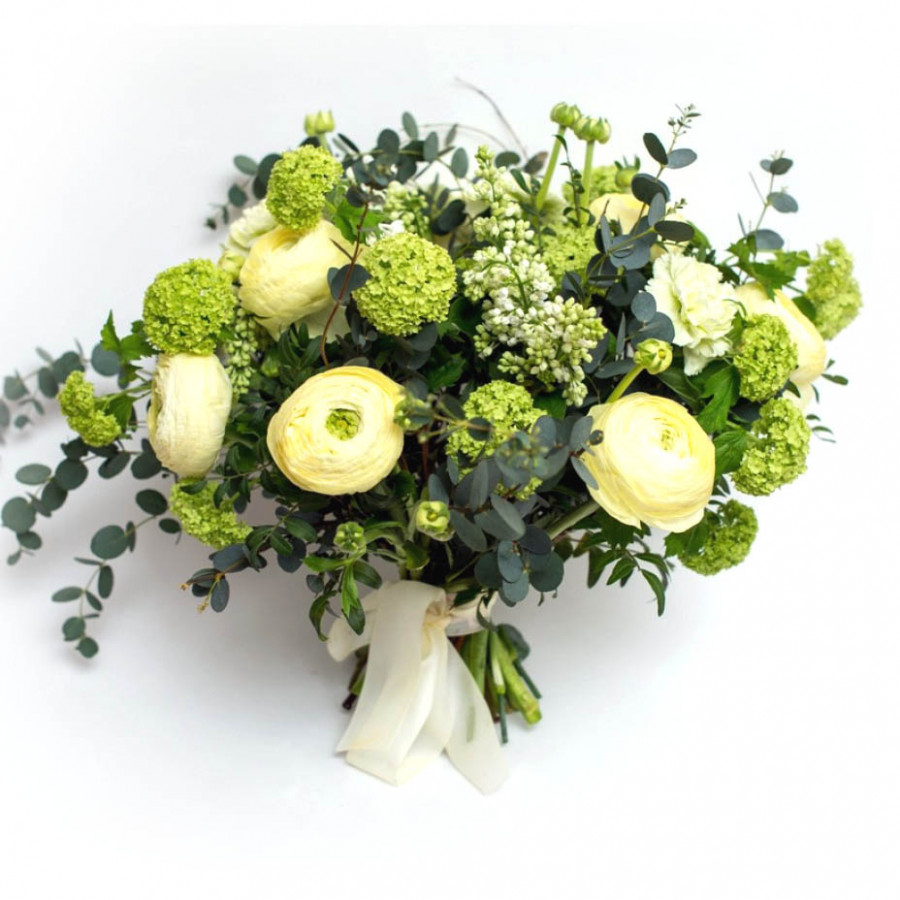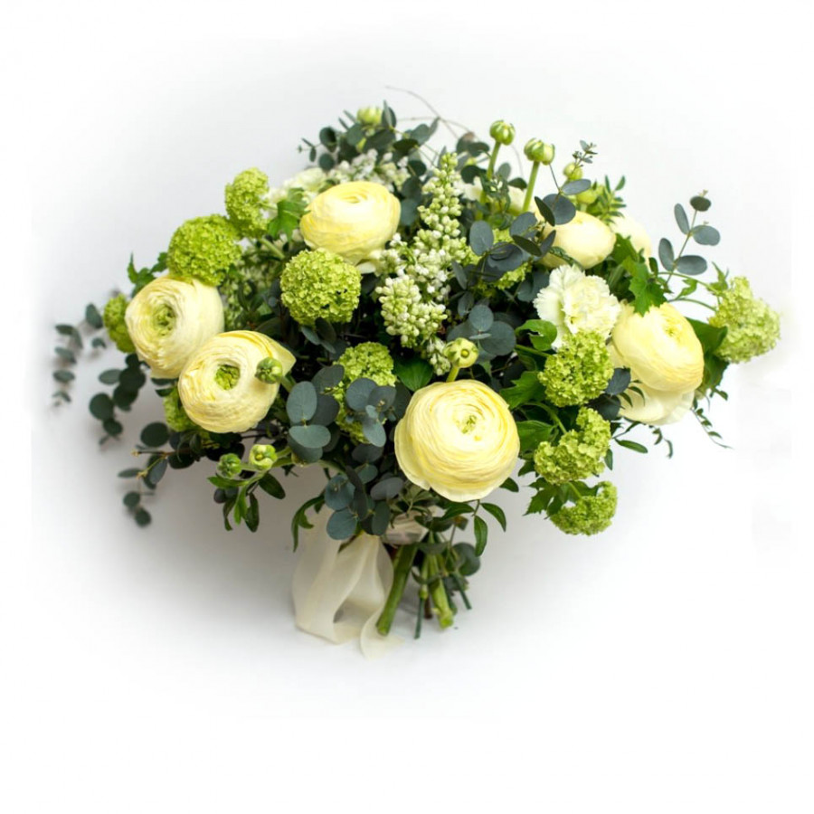Букет из белой сирени и ранункулюсов